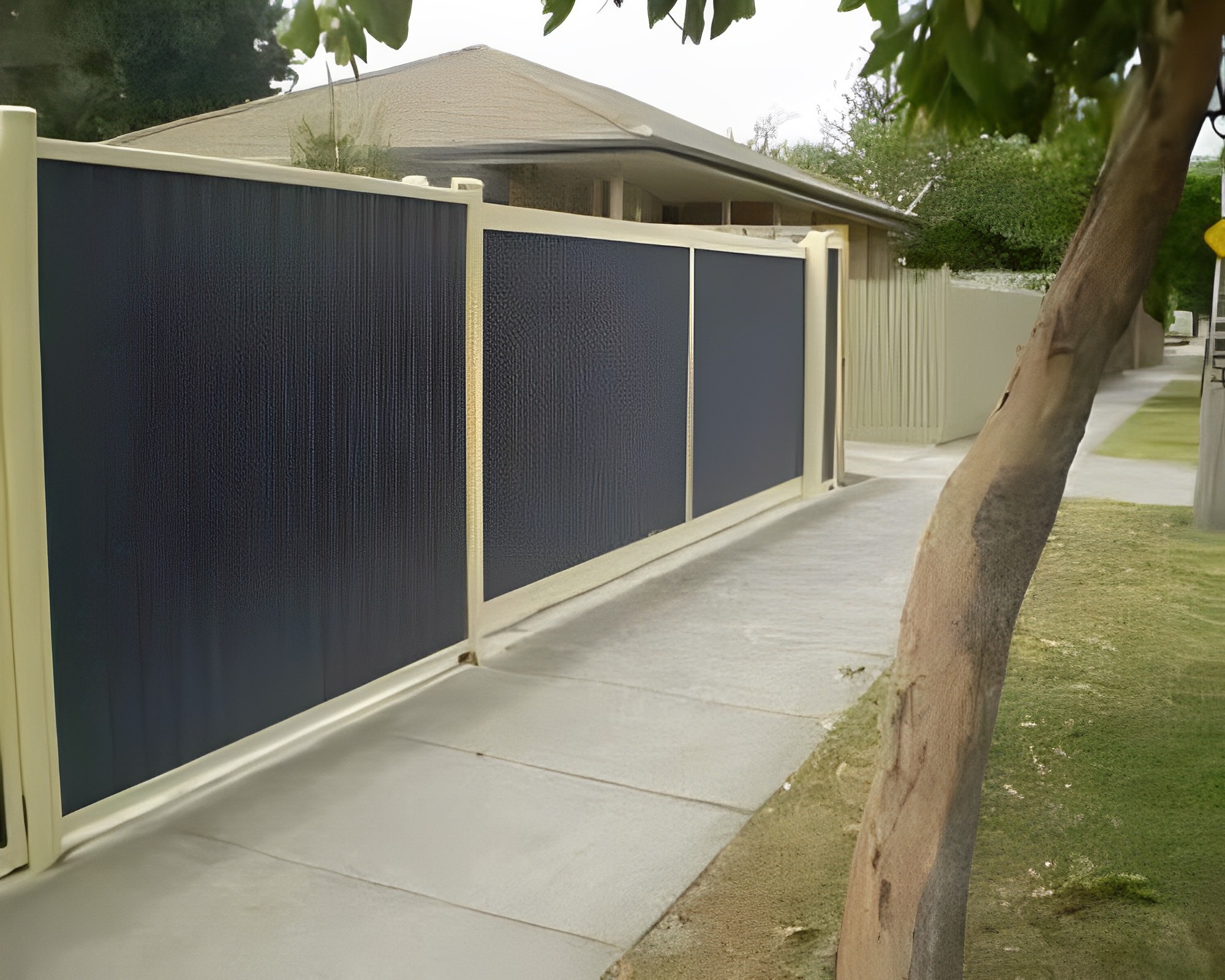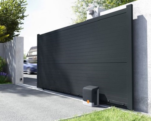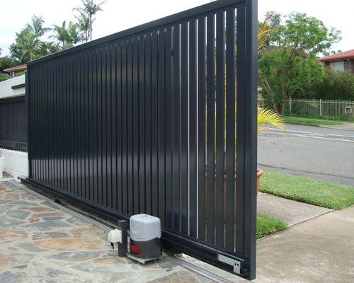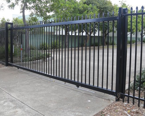 Sliding Gates are gates that roll on a wheel on the front bottom edge of the gate and use a ground mounted track for the wheels to roll on, it is a single unit gate that stows to one side of the driveway opening, along the fence or property line. Sliding gates requires little space and is a solution for those who have a steep driveway as it allows vehicles and pedestrians or landowners to access the property safely and easily.